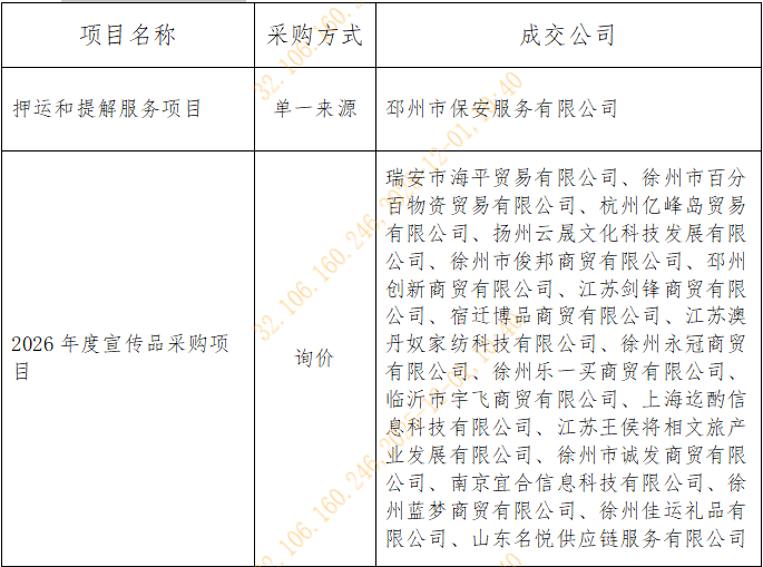 江蘇邳州農(nóng)村商業(yè)銀行股份有限公司押運和提解服務等項目招標集采工作已經(jīng)按照法定程序結(jié)束,現(xiàn)將采購結(jié)果公示如下: